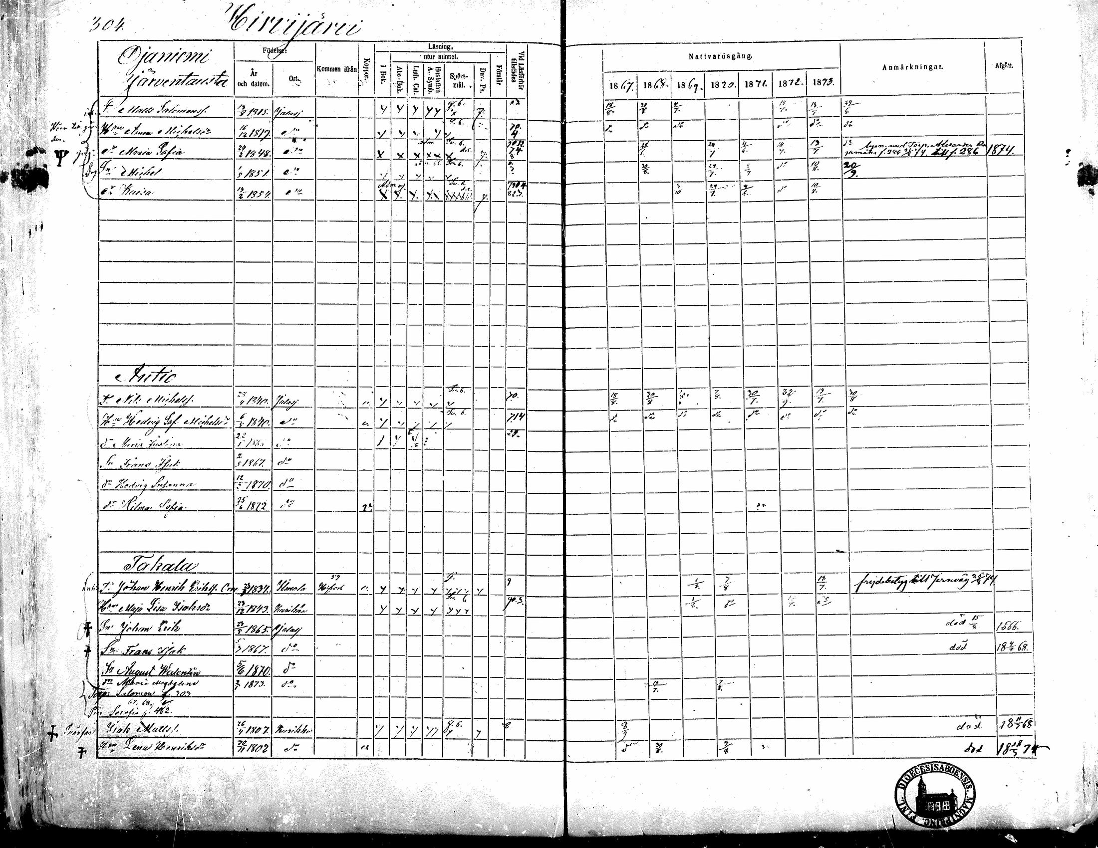 Jalasjärvi , Rippikirja, 1867-1874