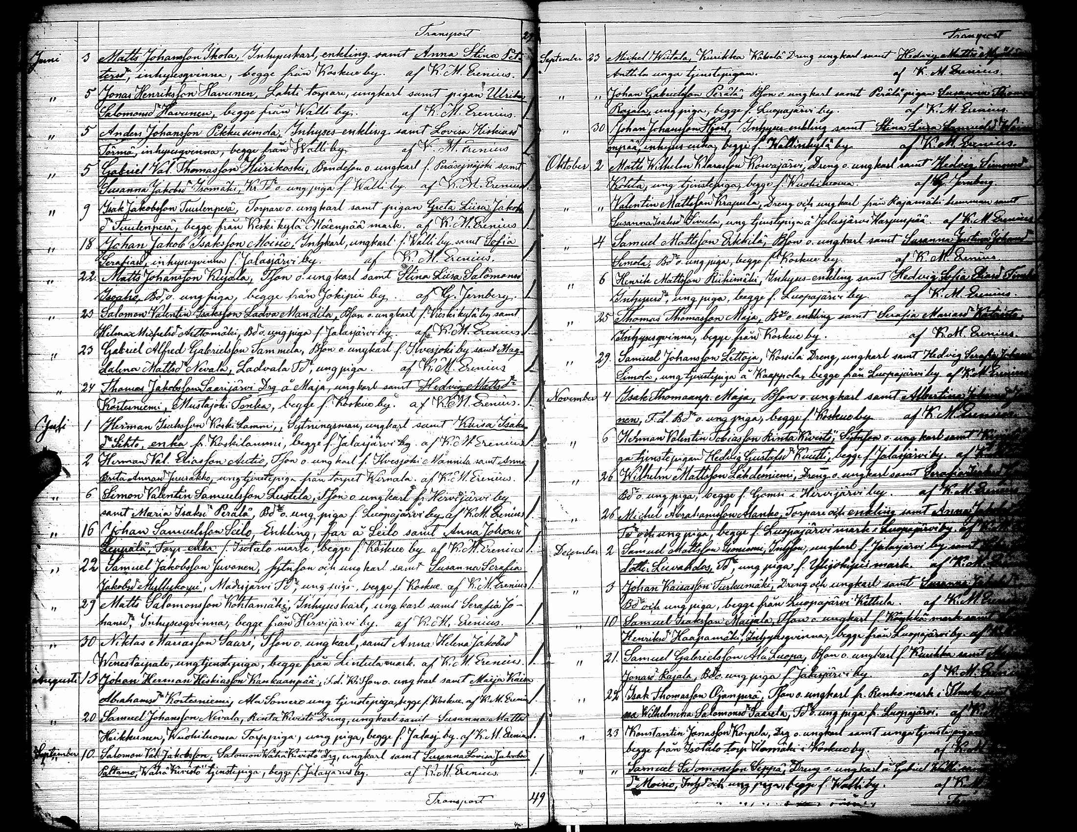 Jalasjärvi , Vihityt, 1859-1884