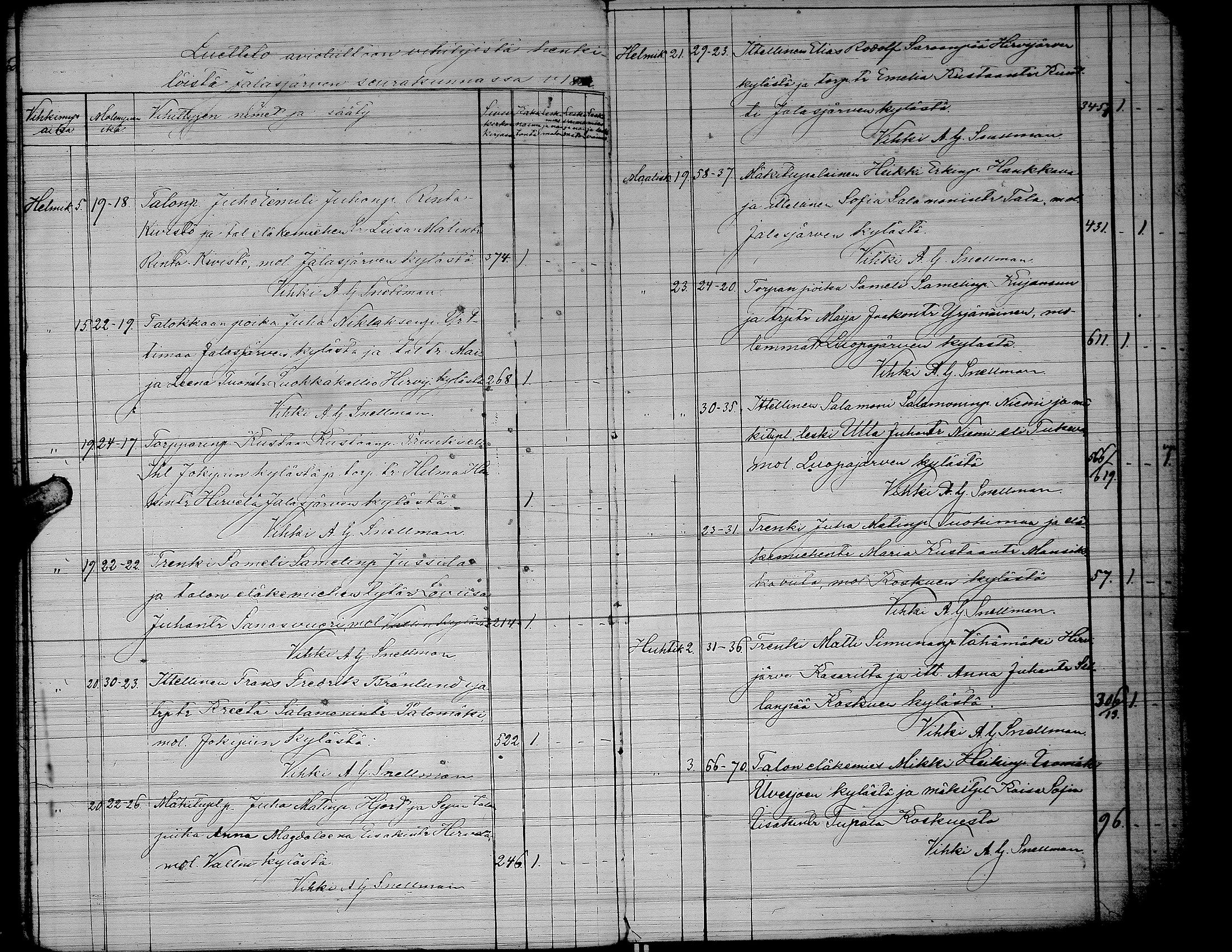 Jalasjärvi , Vihityt, 1859-1884