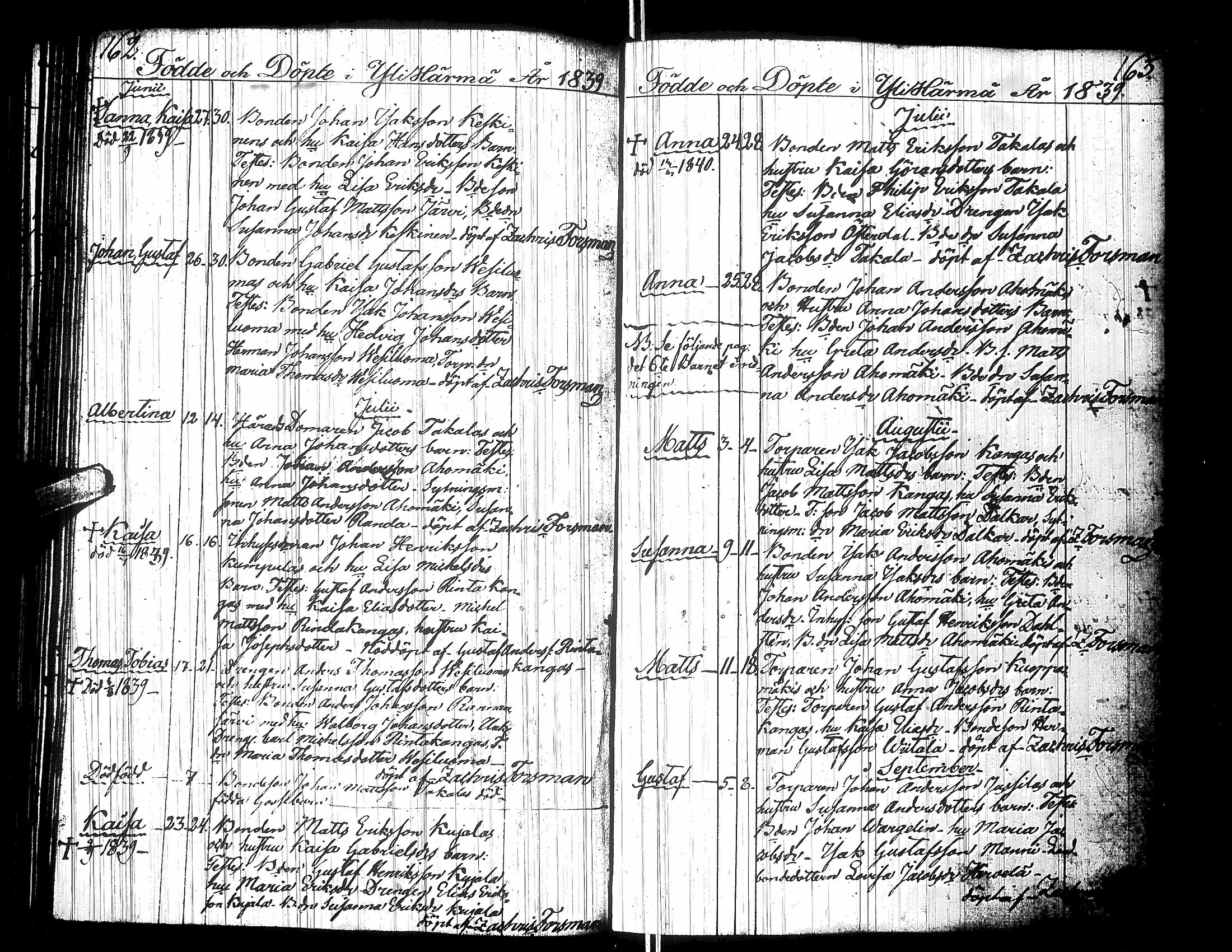 Ylihärmä , Syntyneet, 1823-1849