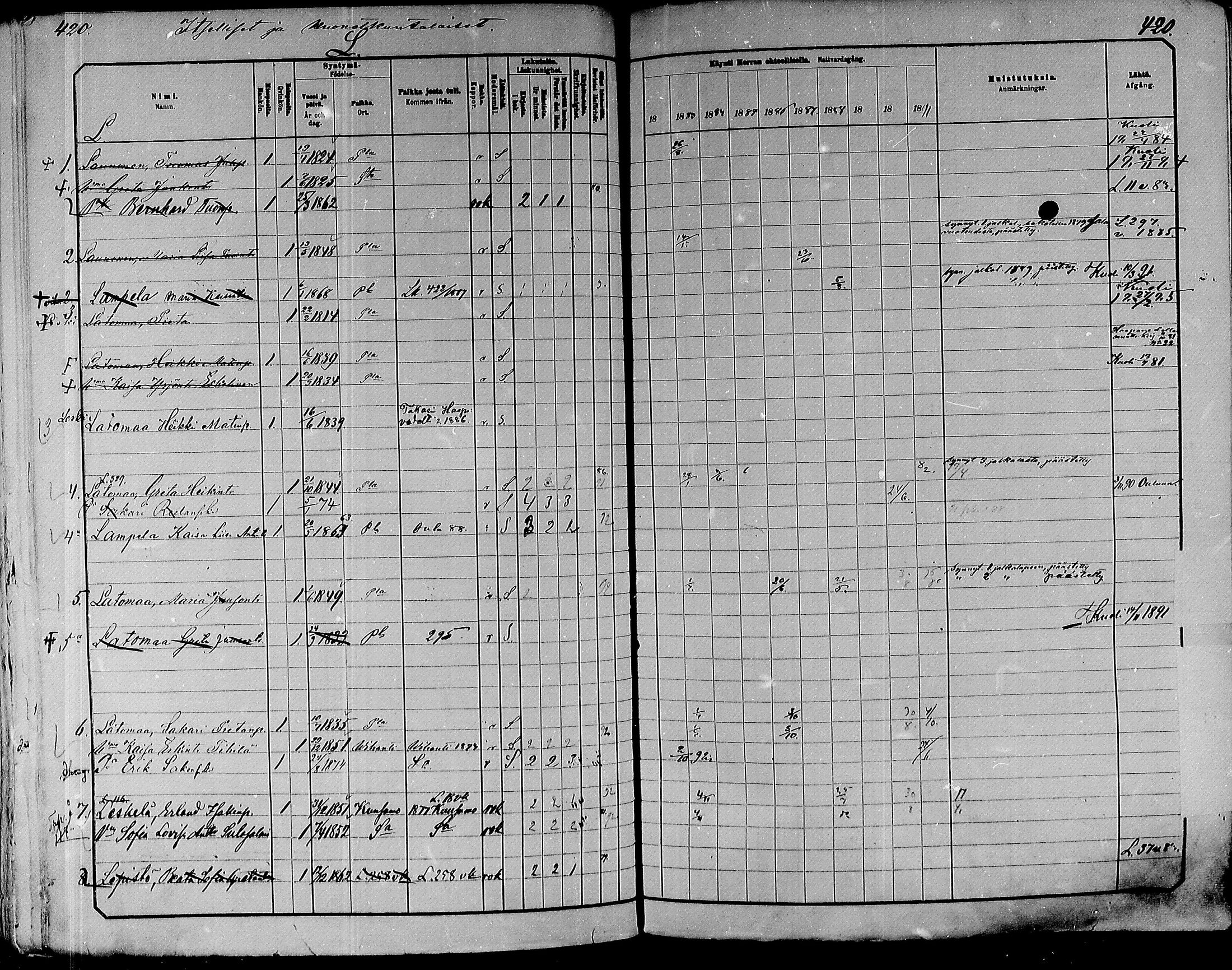Paavola rippikirja, 1882-1891