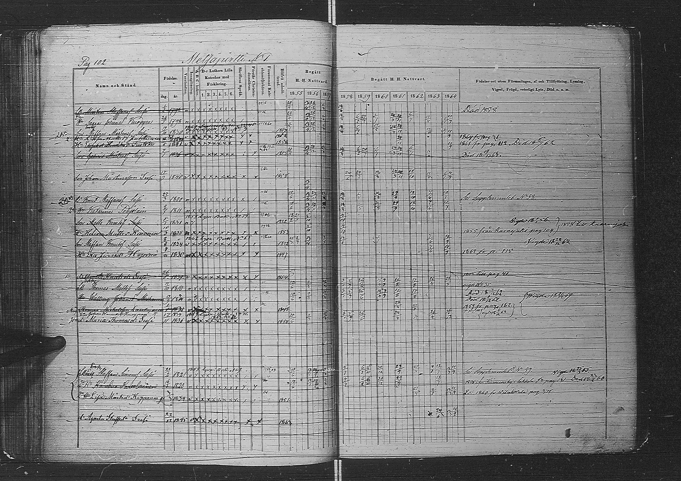 Metsäpirtti rippikirja, 1855-1864