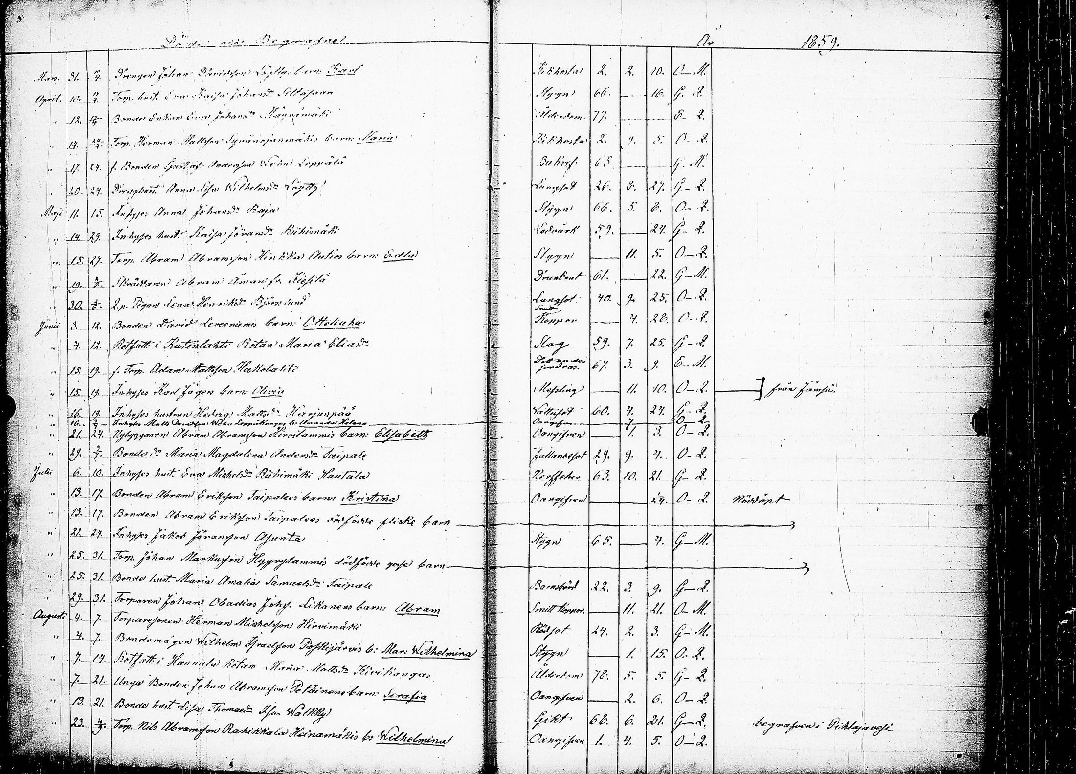 Keuruu kuolleet, 1859-1883