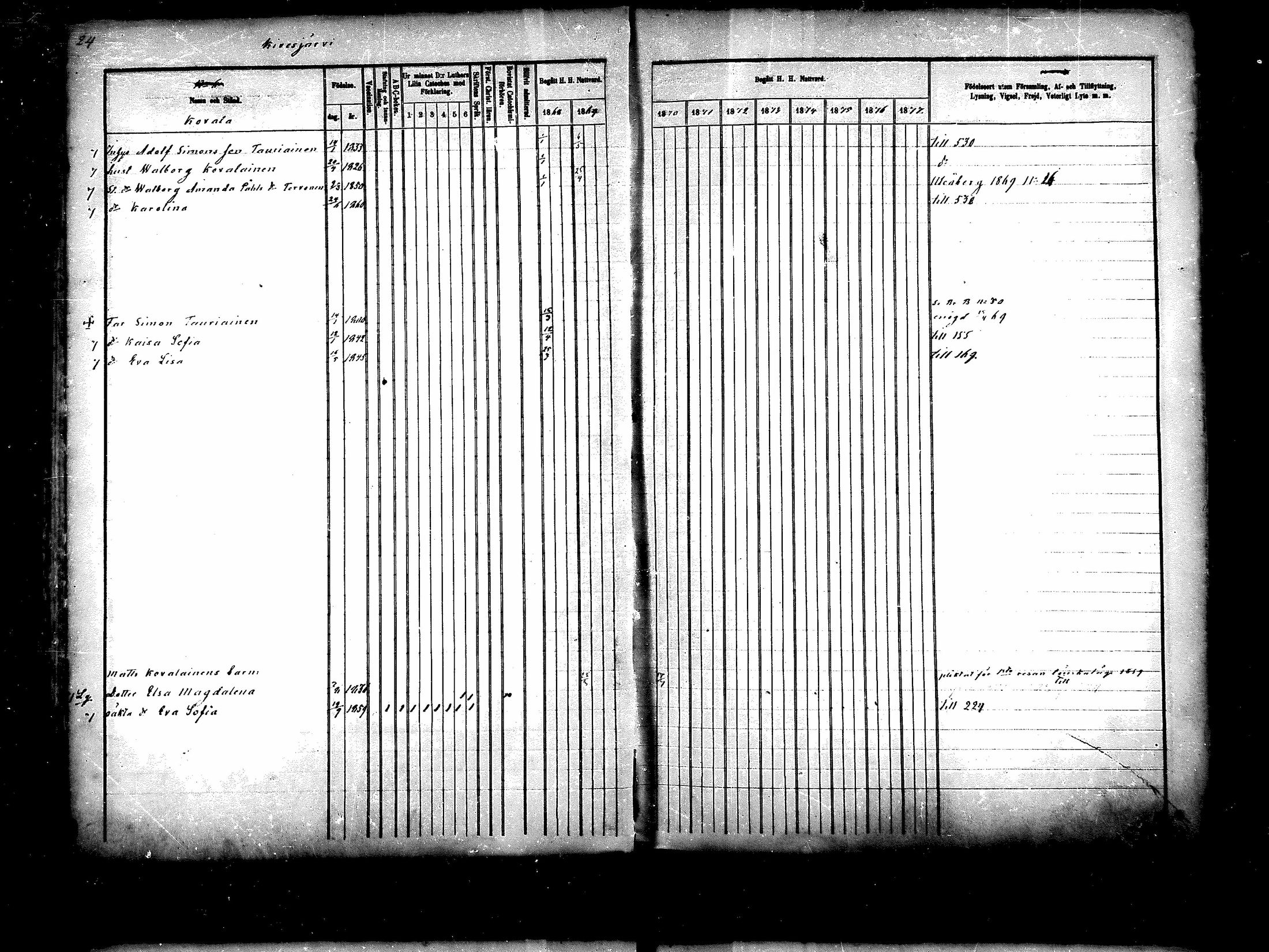 Paltamo rippikirja, 1868-1879