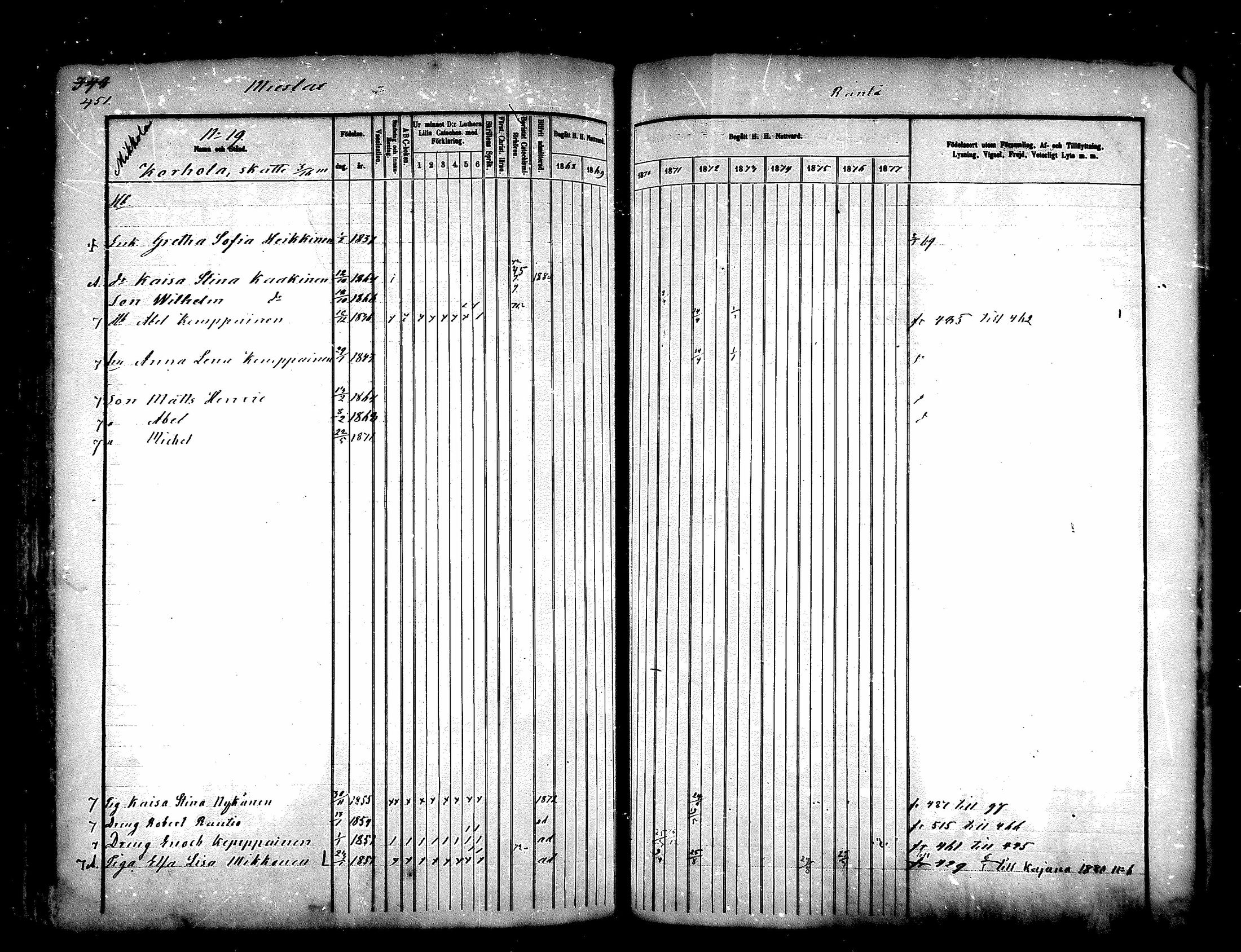 Paltamo rippikirja, 1868-1879