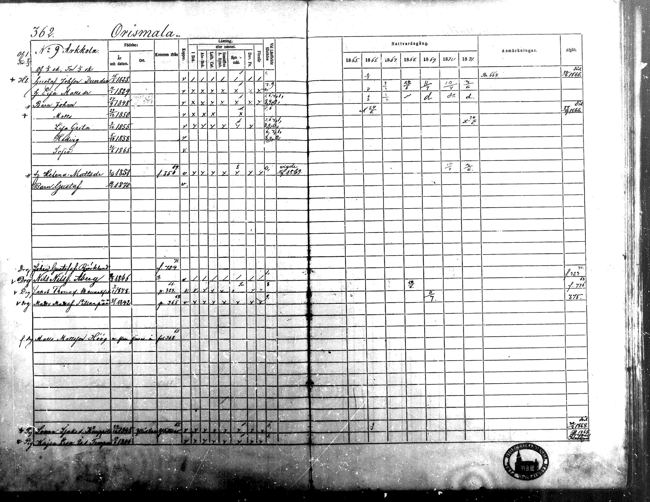 Isokyrö , Rippikirja, 1865-1871