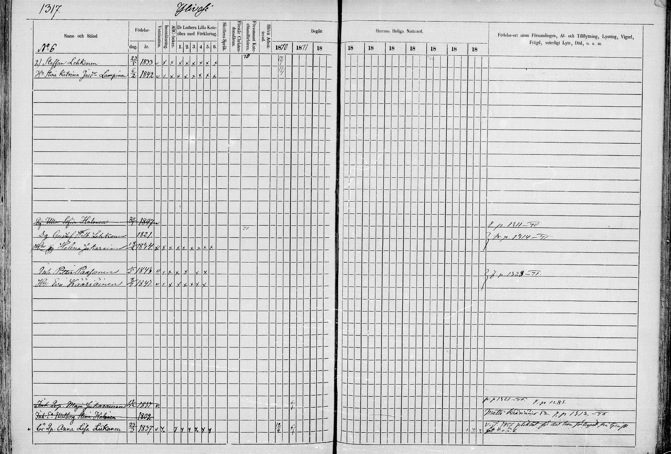 Juva , Rippikirja, 1868-1879