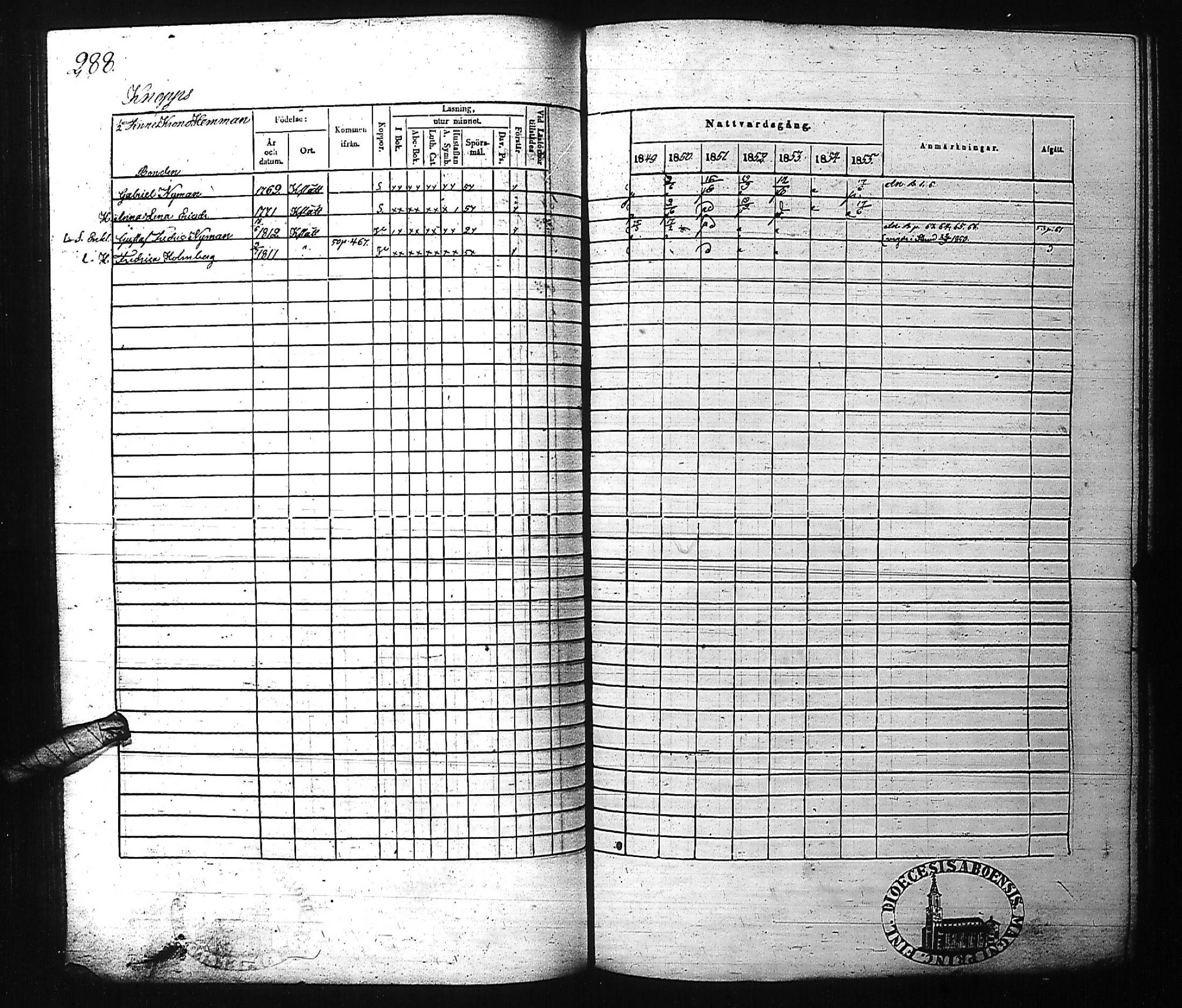 Kirkkonummi , Rippikirja, 1849-1855