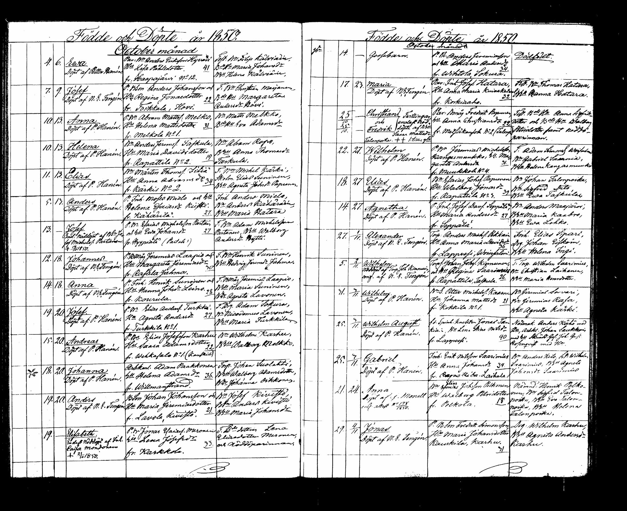 Lappee , Syntyneet, 1839-1853