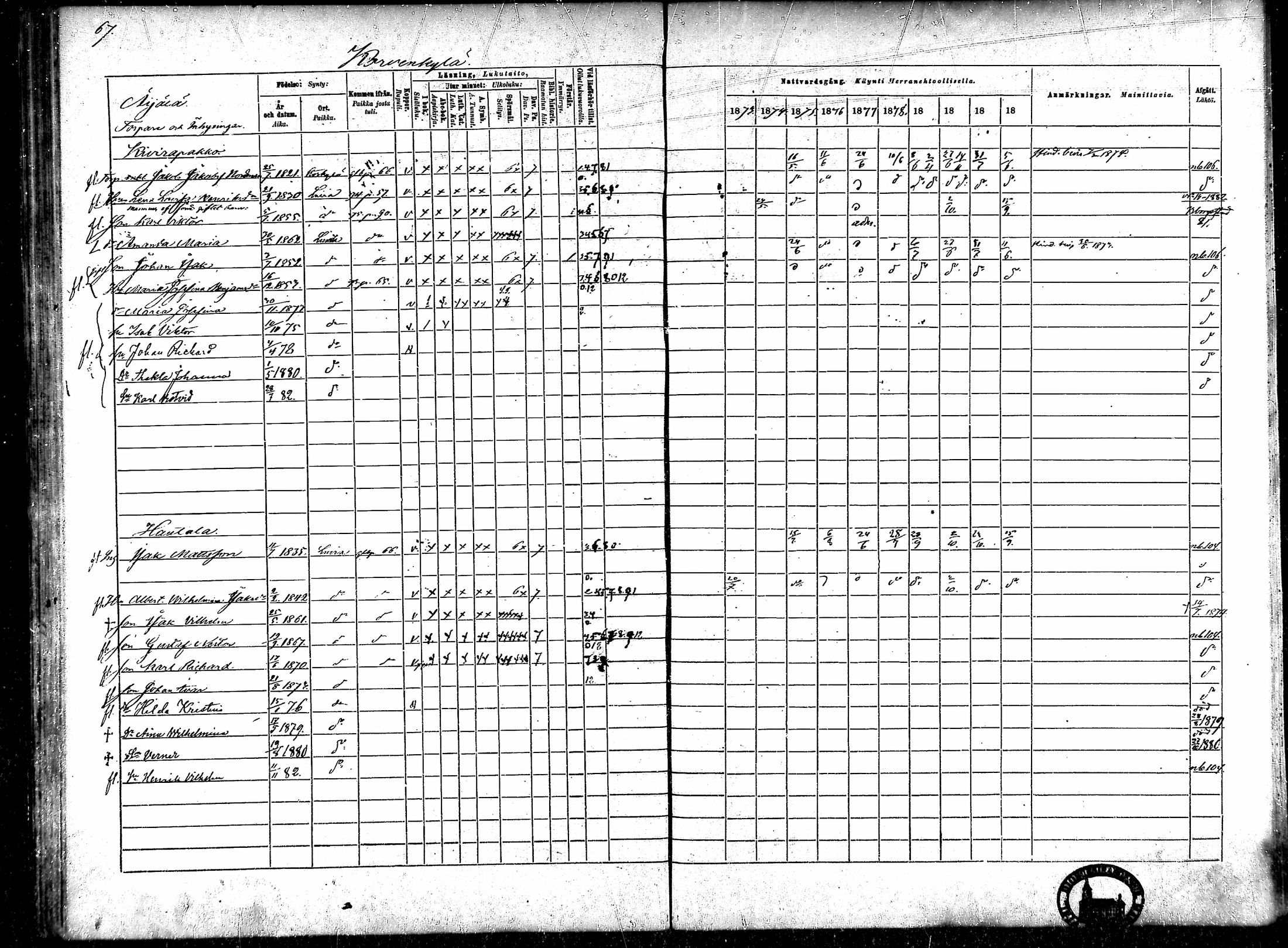 Luvia , Rippikirja, 1873-1882