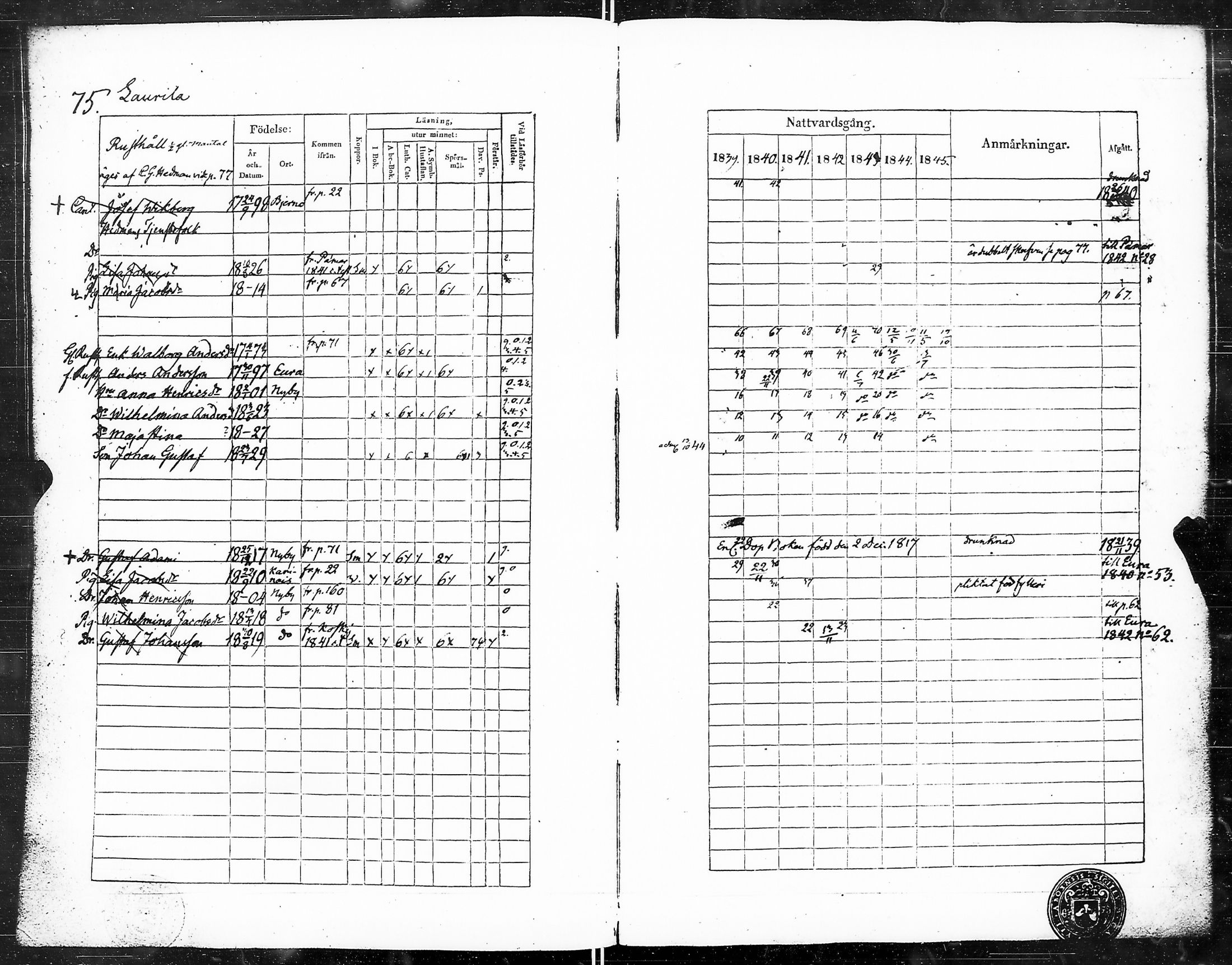 Marttila , Rippikirja, 1839-1845