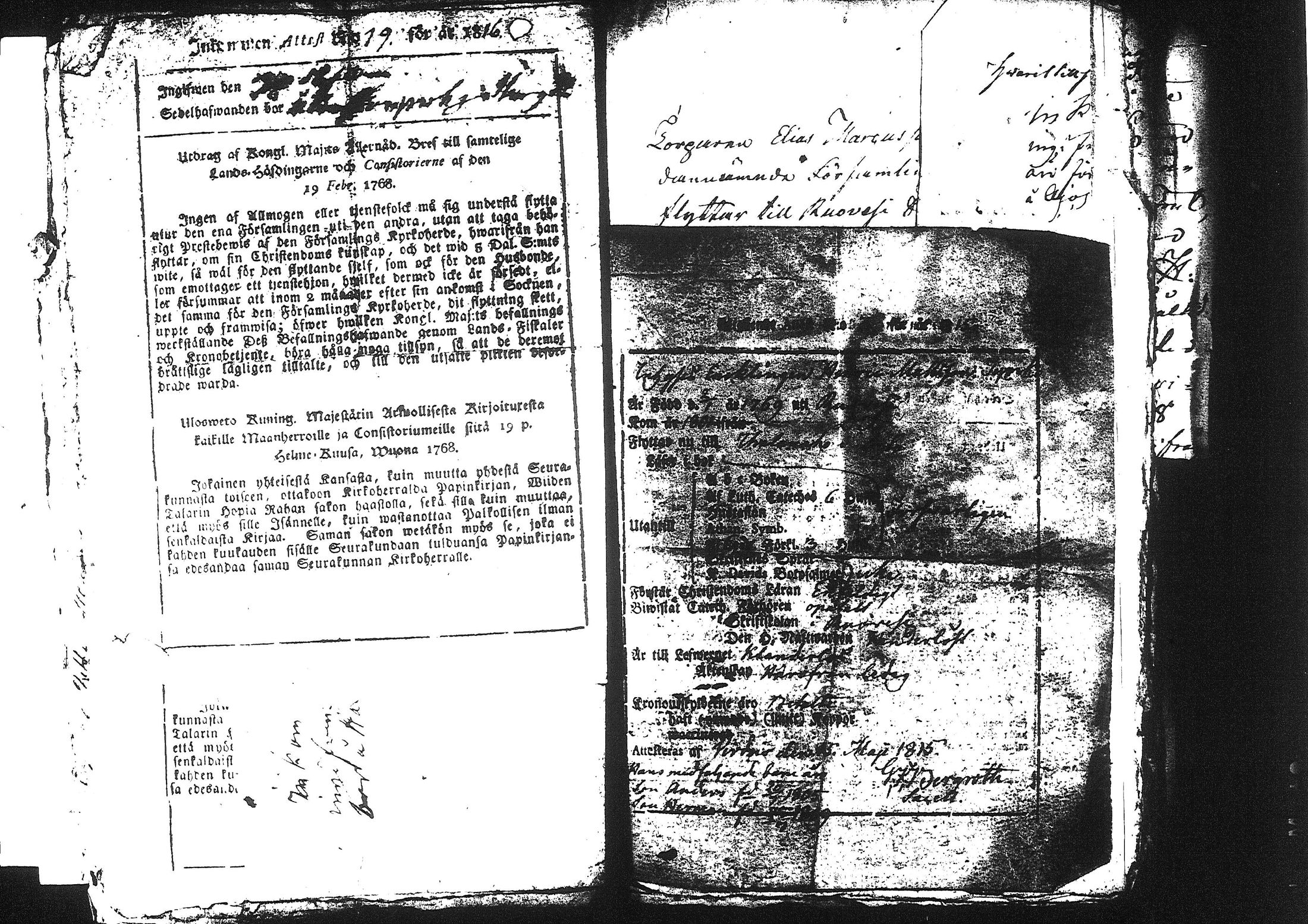 Ruovesi , Muuttokirjoja, 1816-1822