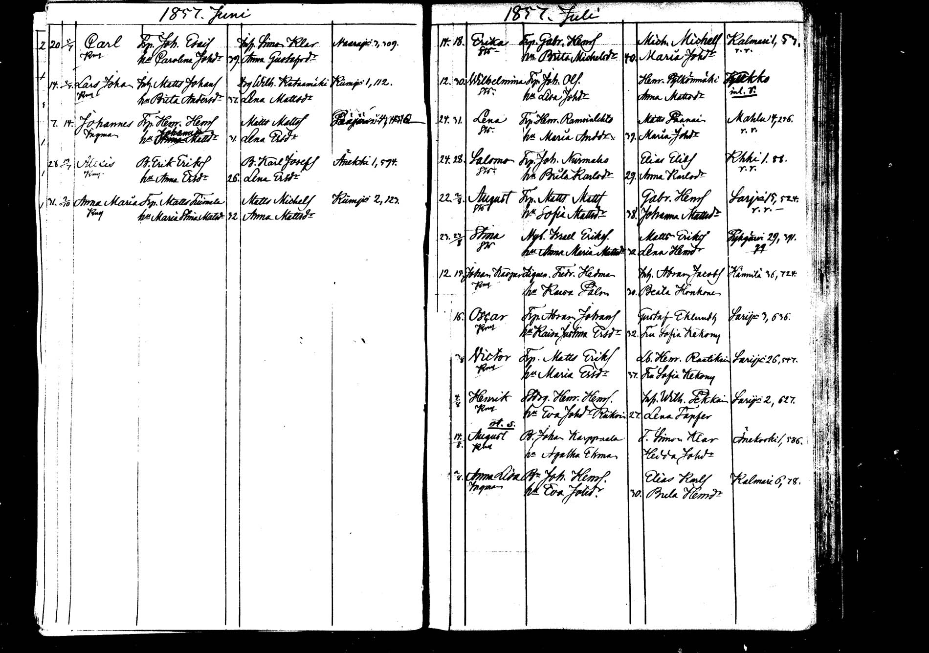 Saarijärvi , Syntyneet, 1855-1871