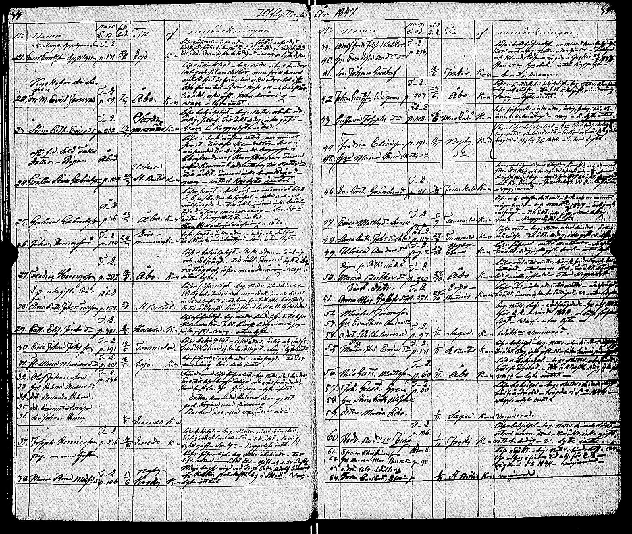 Somero , Muuttaneet, 1843-1885